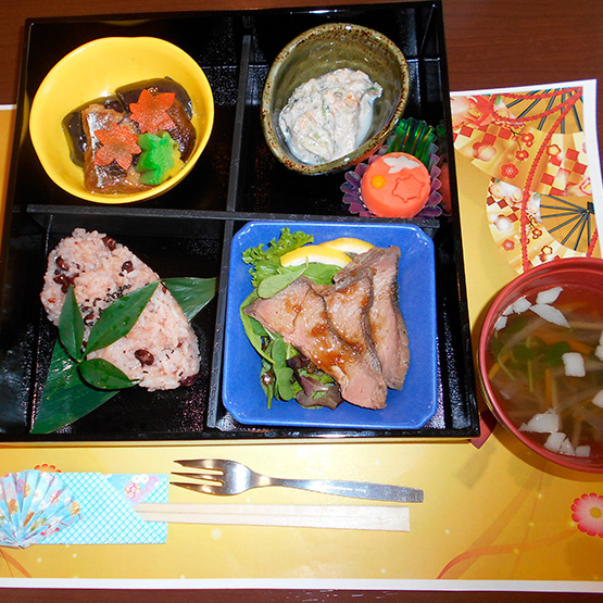 年1回グループ施設がテーマに沿った献立を作成し味や見た目、工夫した点などを競い合い、毎日の食事内容の向上に努めております。